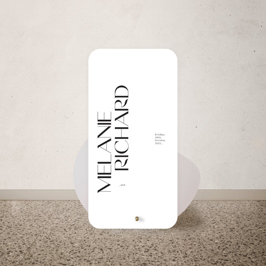 Wedding Stationery Black Satin Stand Sign Mockup